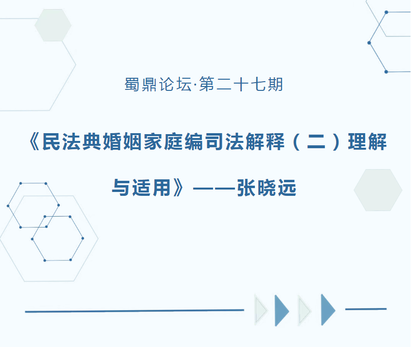 论坛现场 本次蜀鼎论坛邀请四川大学法学院副教授、中国法学会婚姻家庭法学研究会理事、蜀鼎所管委会主任张晓远担任主讲嘉宾,演讲的主题是《民法典婚姻家庭编司法解释(二)理解与适用》。