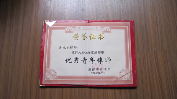 我所梁光术律师获得“2006年度成都市优秀青年律师”荣誉称号