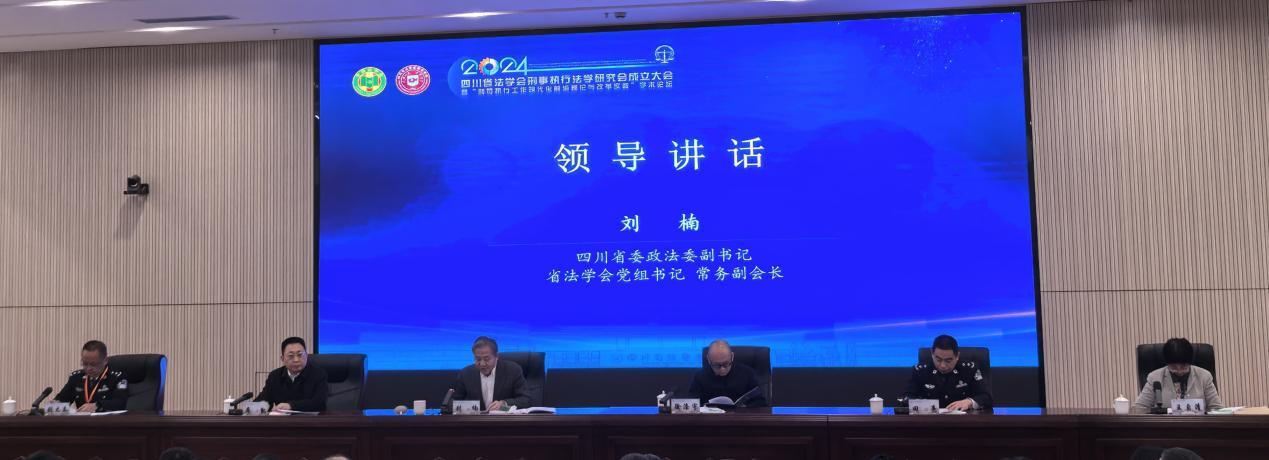 2024年12月20日上午,全国首个省级刑事执行法学研究会——四川省法学会刑事执行法学研究会成立大会,在四川司法警官职业学院隆重举行。四川省委政法委副书记、省法学会党组书记、常务副会长刘楠,四川省司法厅副厅长徐涤宇出席会议并作重要讲话。德阳市委常委、政法委书记廖凯,四川司法警官职业学院党委书记田亮出席会议并致辞。省法学会党组成员、秘书长王自清宣读了《四川省法学会关于同意成立四川省法学会刑事执行法学研究会的决定》。四川司法警官职业学院党委副书记、院长张大立教授主持会议。来自四川省直相关政法单位、省内各市州政法机关单位和律师事务所等法律实务部门,四川大学、西南政法大学、华东政法大学、西南财经大学、司法部预防犯罪研究所、中央司法警官学院、四川司法警官职业学院等高校和研究机构的专家代表100余人参加了本次成立大会。四川蜀鼎律师事务所名誉主任、四川大学法学院博士生导师魏东教授、律师何为和魏汪洋参加了会议。