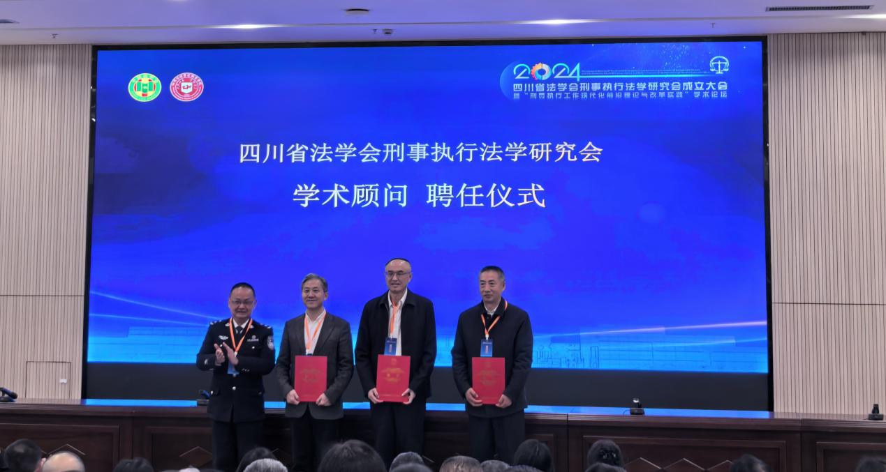 刑事执行法学研究会聘任中央司法警官学院夏宗素教授为荣誉会长,聘任中国监狱工作协会副会长李豫黔、四川省委政法委副书记、省法学会常务副会长刘楠、中央司法警官学院监狱学学院院长王雪峰为学术顾问。