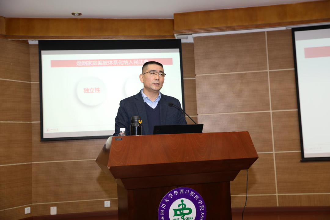 2020年11月23日下午,蜀鼎所执行主任、四川大学法学院副教授张晓远应邀为四川大学华西口腔医学院教职工讲授《民法典婚姻家庭编》,华西口腔医院的院领导、教职工、其他医护人员近百人参加了此次培训会。