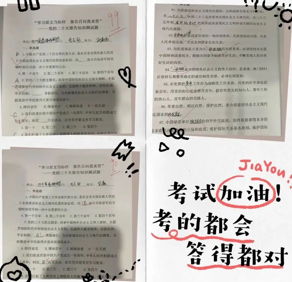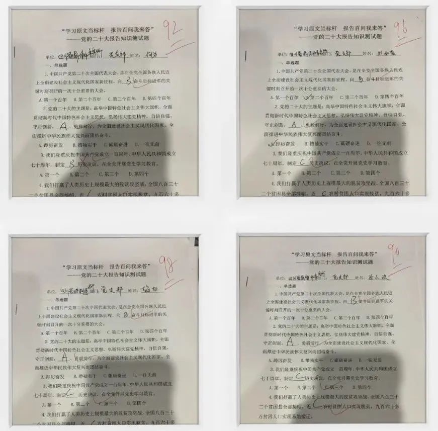 本次知识测试,以党的二十大报告为主要内容,题型主要为单选题,总分为100分,限时30分钟完成。在测试过程中,全所律师均摩拳擦掌、情绪高昂,争分夺秒,力创佳绩。最终,多位律师取得90分以上的较优成绩,四川蜀鼎律所事务所党支部为他们点赞。