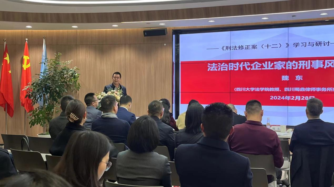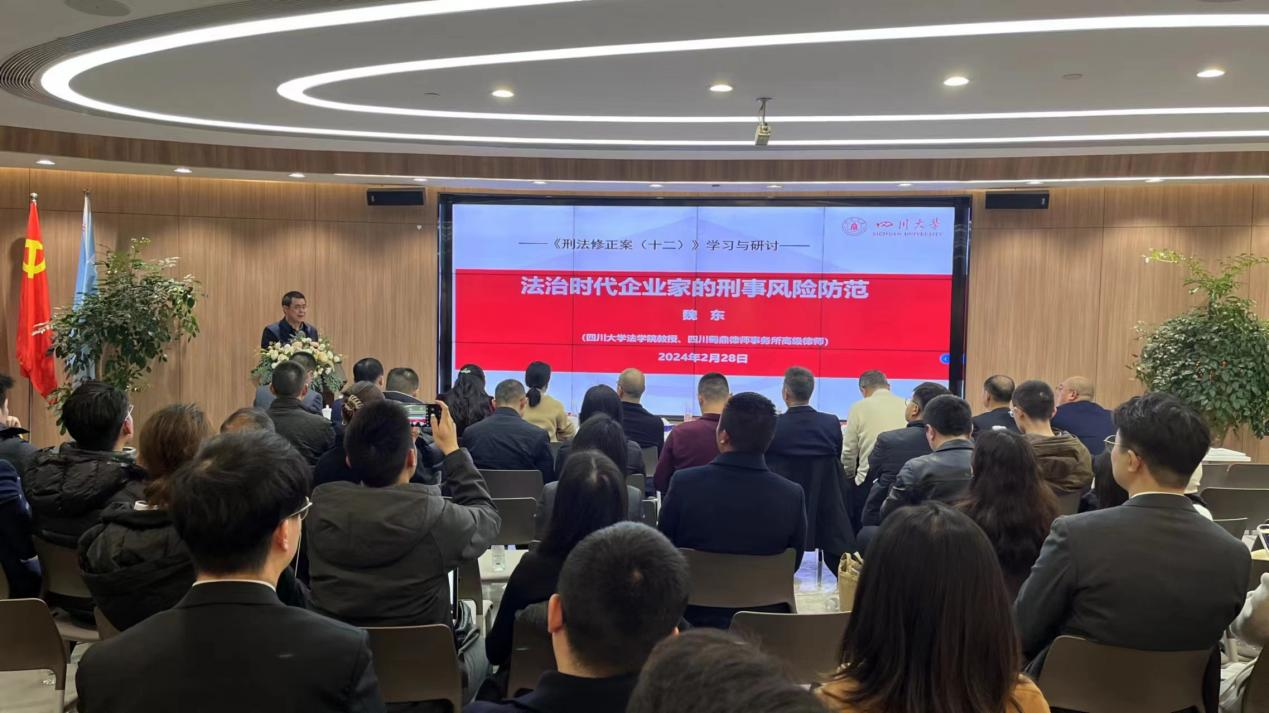 2024年2月28日,由四川致高律师事务所主办的“从《刑法修正案(十二)》看民营企业经营中的刑事风险防范与应对”专题研讨会在该所会议大厅召开,来自四川省内实业界企业家代表以及四川致高所、蜀鼎所、炜衡所(成都)等多家律师事务所的代表一百余人参加了研讨会。