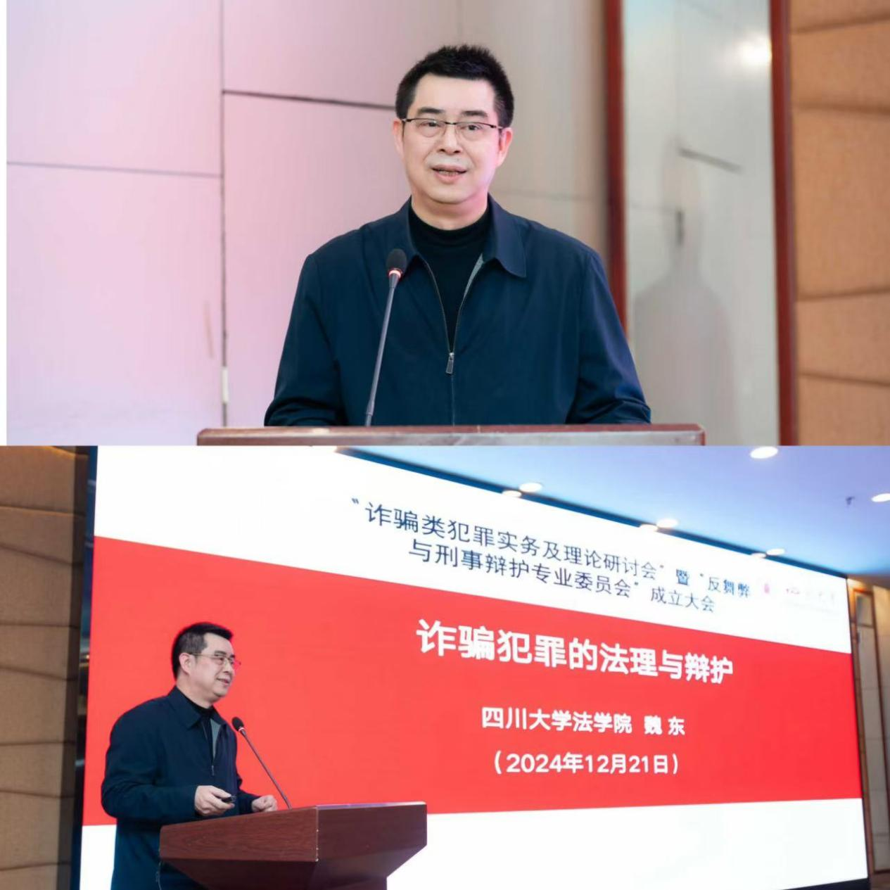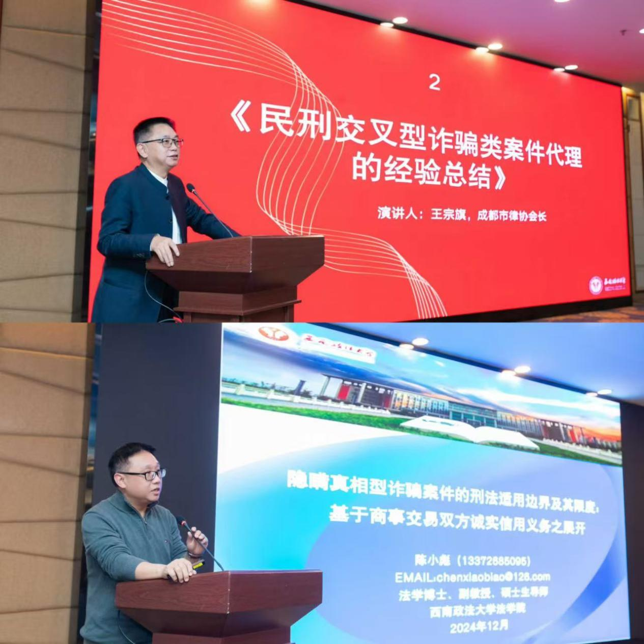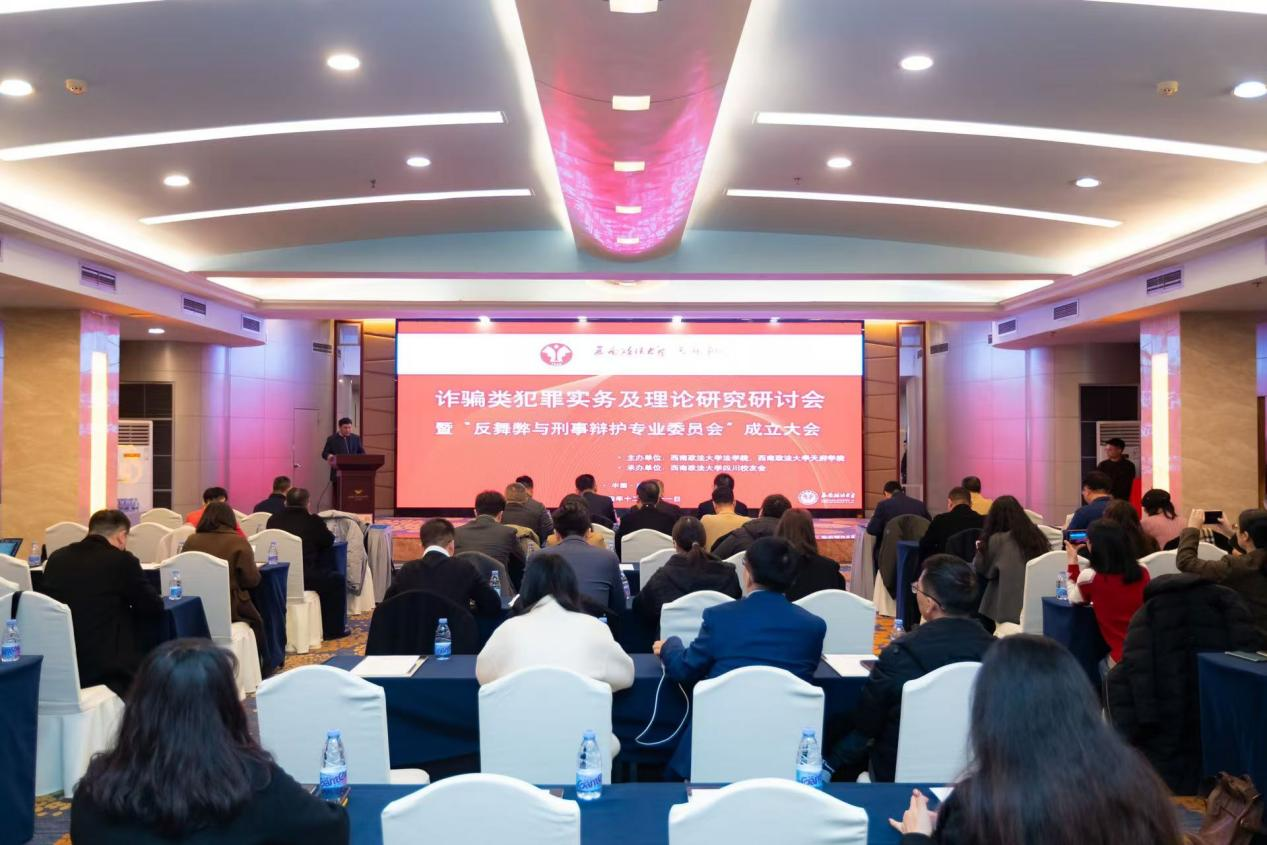 2024年12月21日下午,由西南政法大学法学院、西南政法大学天府学院主办,西南政法大学四川校友会承办的“诈骗类犯罪实务及理论研究研讨会”暨“反舞弊与刑事辩护专业委员会”成立大会,在成都望江宾馆五福楼二楼多功能厅隆重举行。来自全国十余省市区的西南政法大学校友会代表、四川省成都市政法公安机关和律师协会的专家代表,共计100余人莅临会议现场。四川师范大学法学院院长陈山教授担任会议主持人。