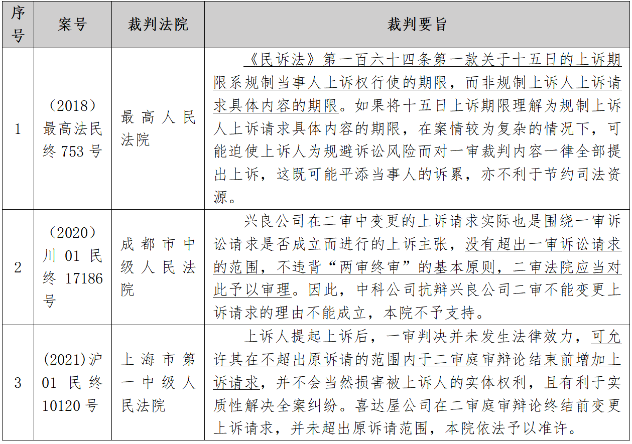 支持当事人在上诉期限届满后增加诉讼请求的案例,主要理由为:《民事诉讼法》第一百六十四条(即现《民事诉讼法》第一百七十一条)关于上诉期限的规定是系规制当事人上诉权行使的期限,而非规制上诉人上诉请求具体内容的期限。如若当事人在二审法庭辩论终结前变更、增加了上诉请求,且并未超出一审的诉请范围,则二审法院应当予以审理。