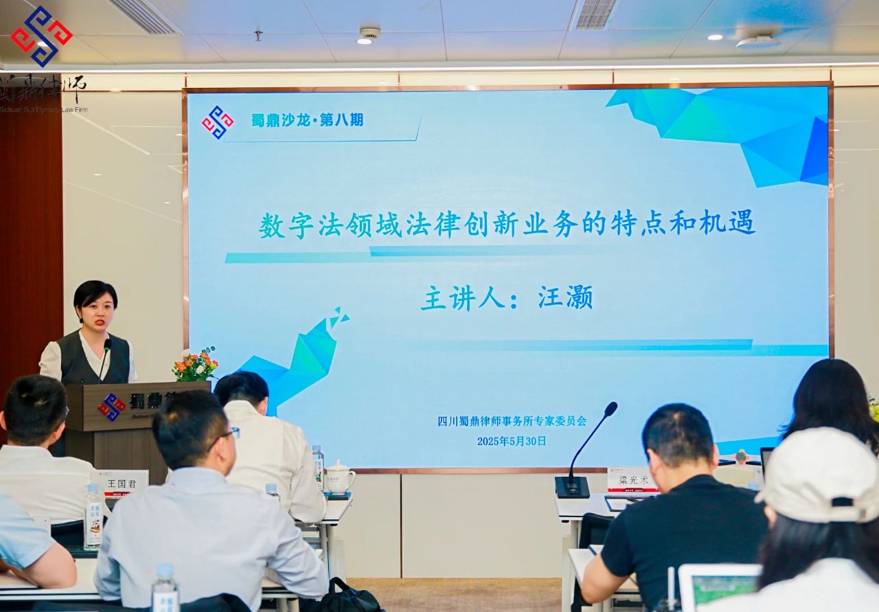 粽叶飘香的端午前夕,一月一期的蜀鼎沙龙如约举行。本期沙龙由蜀鼎所专家委员会副主任赵琴律师主持,主讲嘉宾为西华大学法学与社会学学院教授、博士生导师汪灏。作为四川省、成都市首席法律咨询专家,成都市人大常委会立法咨询专家,以及四川省法学会人工智能与大数据法治研究会常务副会长,汪灏教授结合自身的理论研究与实践调研成果,为大家带来了一场关于数字法领域法律创新业务特点与机遇的深度分享。