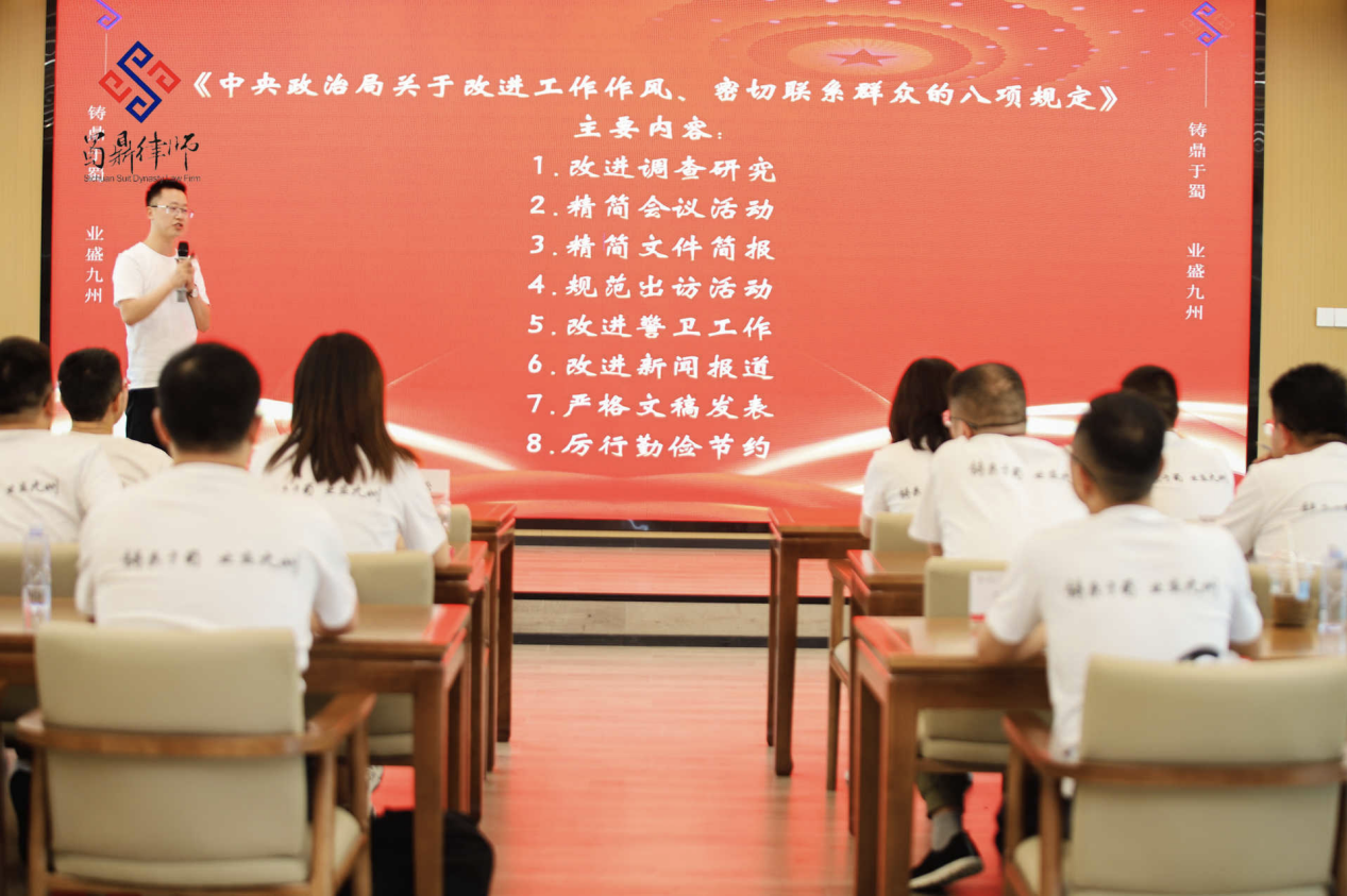 为深入推进全面从严治党向基层延伸,切实筑牢党员律师的纪律防线与职业操守,2025年7月18日,四川蜀鼎律师事务所党支部精心组织"深学八项规定精神,践行律师职业担当"主题党日活动,以学促行强化责任意识,以知践行彰显使命担当。