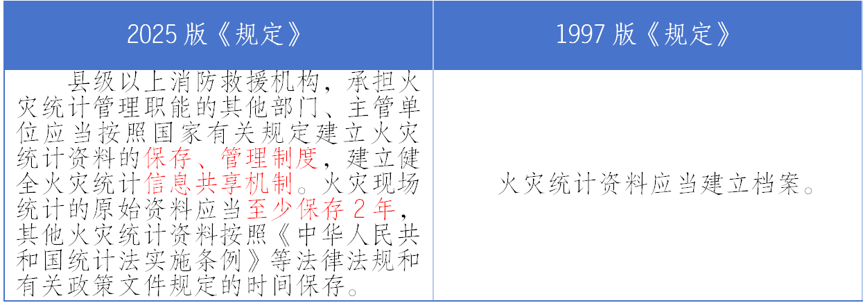 旧规中有基本的火灾统计资料的建档和公布制度,但缺乏具体实施落地细节,新规对此进行了大幅完善。