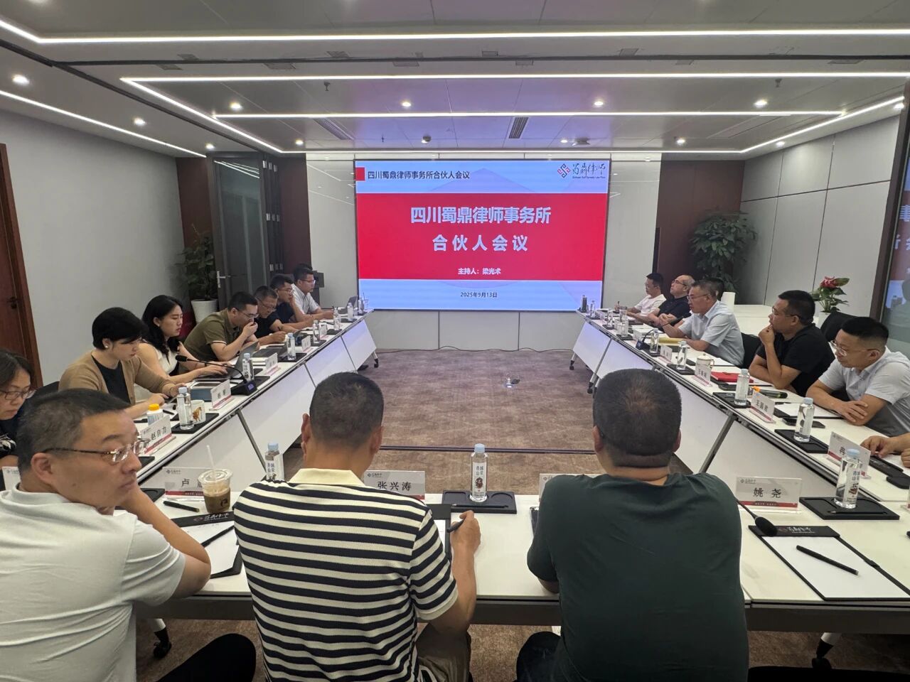 2025年9月13日,四川蜀鼎律师事务所多功能会议室内气氛庄重而热烈,2025年全体合伙人会议如期举行。21位合伙人全部到会,以“凝心聚力谋发展,砥砺奋进谱新篇”为主题,围绕专家资源整合、律师队伍融合、专业团队建设三个议题展开深入研讨。