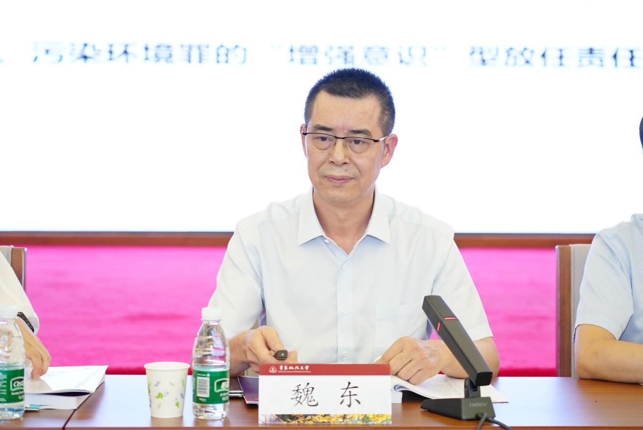研讨会围绕“生态环境犯罪的刑法惩治”主议题,会议设置了“生态环境犯罪惩治的基础理论”“生态环境犯罪惩治的法治系统”“生态环境犯罪惩治中的多元机制”“生态环境犯罪惩治的其他问题”四个子议题。来自国内近二十所高校与科研院所、司法机关、法律实务机构的三十余位发言人与评议人就相关议题发表演讲或进行评议。魏东教授作《污染环境罪的累积犯法理再诠释》的专题发言,认为在当下中国刑法学自主知识体系语境下,污染环境罪的累积犯法理诠释与司法适用研究同时呈现出领域法和功能主义特色,有利于实现污染环境罪解释结论的整全有效性。