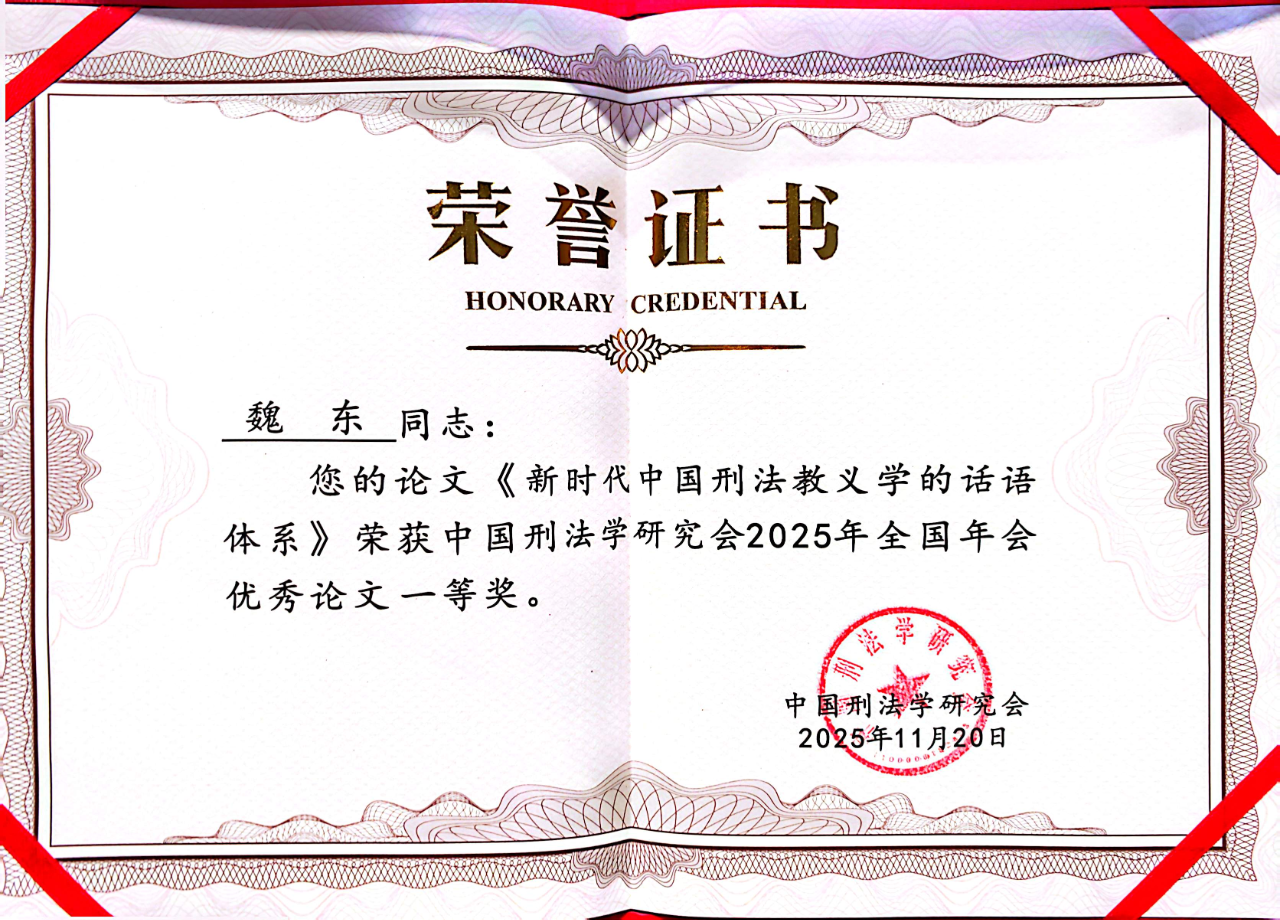 【蜀鼎荣誉】 蜀鼎律师获中国刑法学研究会年会论文一等奖
