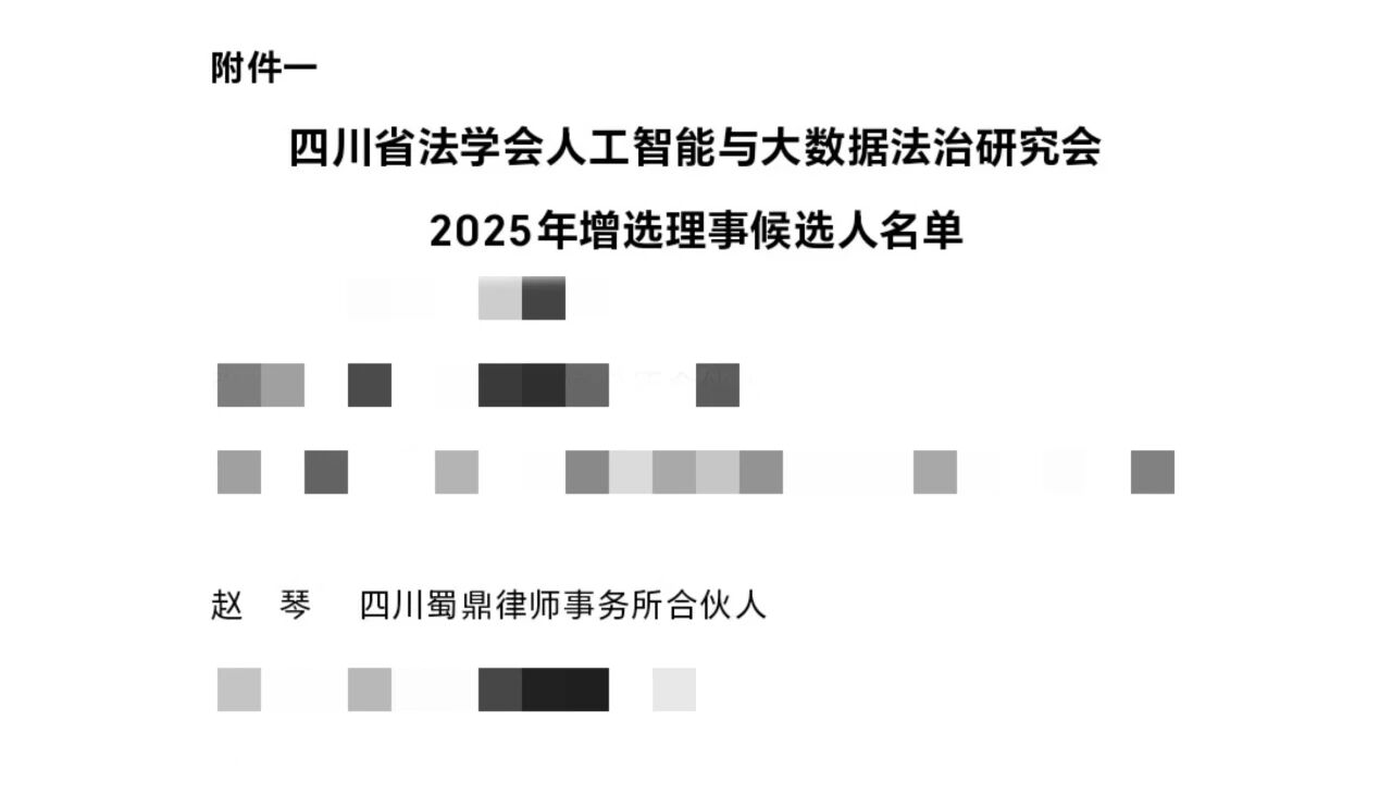 2025年11月22日,四川蜀鼎律师事务所合伙人、专家委员会副主任赵琴律师应邀出席四川省法学会人工智能与大数据法治研究会2025年年会暨智能网联汽车发展促进立法研讨会,并正式受聘为该研究会理事。