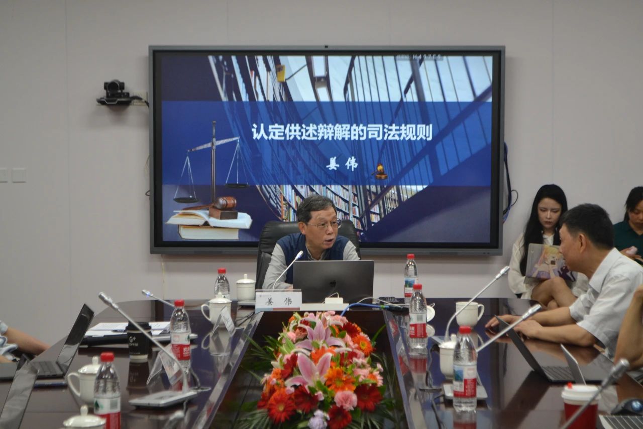 讲座中,姜伟教授结合法学前沿理论研究成果、相关法律和司法解释规定以及中国司法实践经验,依次阐述了供述辩解的四重属性和法律要求、认定供述与辩解的司法规则、非法证据的排除规则、坦白从宽的适用规则、完善供述与辩解制度等方面的丰富内容。他在小结讲座内容时指出,认定供述辩解的司法规则总体上是科学合理的,严格遵守了刑事诉讼法规定及其基本精神和原则;强调在排除非法证据时要遵循价值平衡原则,要在保障被告人权利的同时兼顾被害人权益和社会公共利益,要有利于实现司法为民和公平正义宗旨。