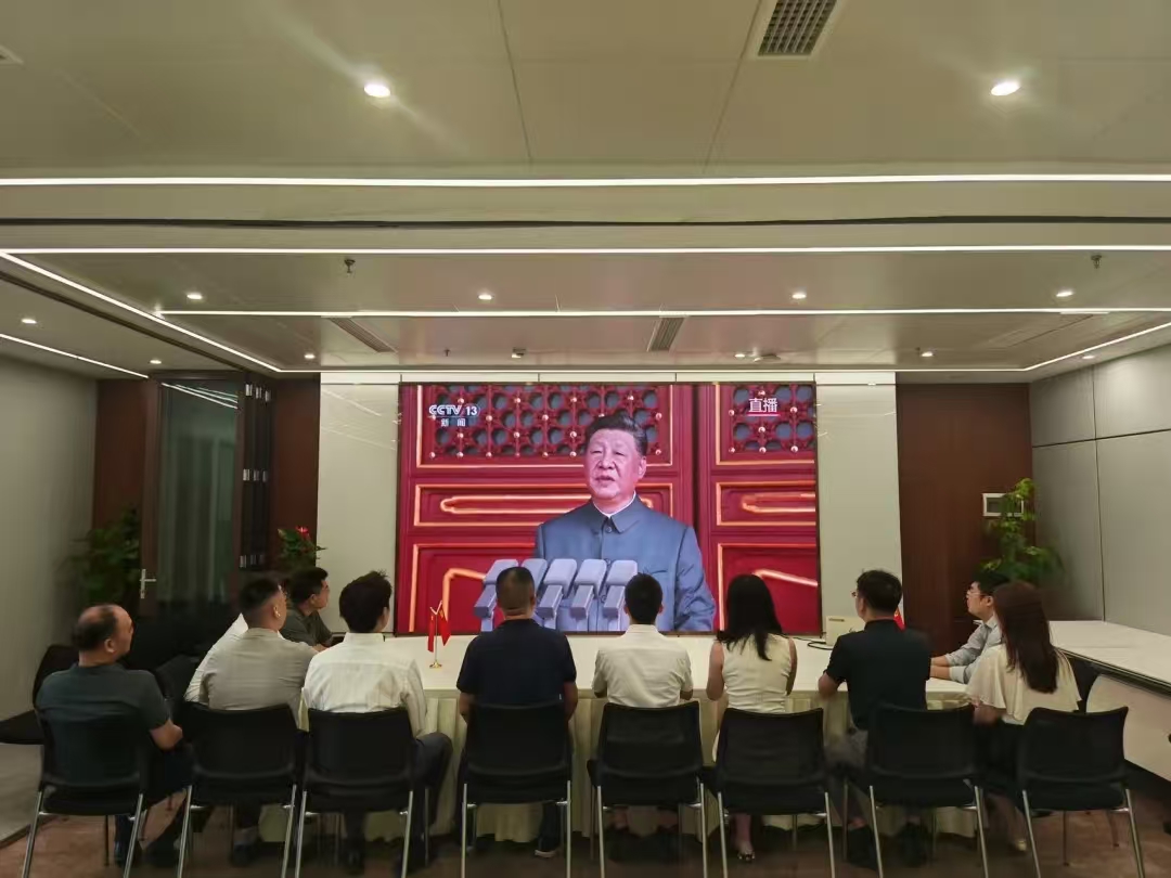 2025年9月3日上午9时,四川蜀鼎律师事务所党支部组织全体党员在律所多功能厅,集中观看了在北京天安门广场举行的“纪念中国人民抗日战争暨世界反法西斯战争胜利80周年大会”直播。中共中央总书记、国家主席、中央军委主席习近平发表了重要讲话。