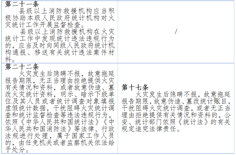 旧规中有基本的火灾统计资料的建档和公布制度,但缺乏具体实施落地细节,新规对此进行了大幅完善。